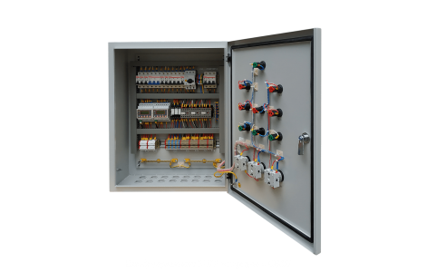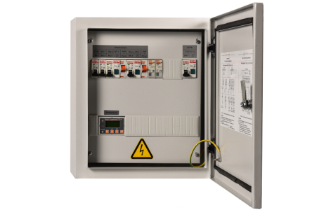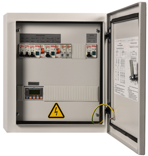 Назначение и область применения: Шкафы управления ТШУ предназначены для управления средствами регулирования отпуска тепловой энергии в системах отопления и горячего водоснабжения тепловых пунктов жилых, общественных и производственных зданий. Возможно применение ТШУ в составе автоматизированных и контрольно-измерительных систем через встроенный интерфейс связи RS-485. Выбор шкафа управления ТШУ зависит от технологической схемы, состава подключаемого оборудования и его мощности. Схемой шкафа управления предусматривается: электропитание от сети ~220В или ~380В; возможность наличия двух вводов электропитания (автоматический ввод резервного питания); выключение нагрузки на вводе электропитания с индикатором наличия напряжения сети; поддержание температуры горячей воды на заданном уровне в системе ГВС; регулирование температуры теплоносителя в зависимости от температуры наружного воздуха (температурный график) или от температуры теплоносителя тепловой сети с возможностью защиты системы отопления от замораживания; снижение температуры с учетом рабочих и выходных дней (время-температурный режим управления для каждого дня недели); поддержание температуры воздуха в помещении на заданном уровне; трёхпозиционное управление клапаном регулирующим; управление подпиткой в независимой системе отопления; управление насосами в автоматическом или ручном режимах; индикаторы работы насосов; защита насосов от коротких замыканий и перегрузок; защита работы насосов при отсутствии теплоносителя (сухой ход); автоматический ввод в работу резервного насоса при неисправности основного; попеременная работа насосов с целью обеспечения равномерного износа; выбор активного уровня («замкнуто» или «разомкнуто») для датчиков наличия неисправности насоса и отсутствия теплоносителя в трубопроводе соответственно. Шкаф управления в пластиковом корпусе предназначен для автоматического управления оборудованием ИТП в системах отопления и горячего водоснабжения.