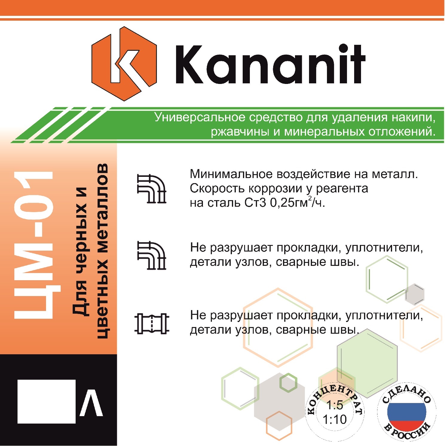 Кананит ЦМ-01 — универсальное средство, обладающее крайне высокой растворяющей способностью, при этом оказывает минимальное коррозионное воздействие на черные и цветные металлы. Предназначен для промывки теплообменников и других видов отопительного оборудования, применяется как для внутренней, так и для внешней очистки от ржавчины, накипи, шлама, известкового налета и прочих минеральных отложений. Очистка теплообменников нужна для сохранения общей эффективности работы системы и сохранения ее от преждевременного износа оборудования. После очистки существенно снижаются затраты на отопление. Удаляет все комплексные и минеральные отложения: накипь, ржавчину и тд. После промывки реагент образует защитный слой, препятствующий образованию новых отложений. Оказывает минимальное воздействие на черные и цветные металлы. Не разрушает прокладки, уплотнители, детали узлов, сварные швы. Поставляется в концентрированном виде. Разбавляется с водой в пропорциях (1:5 – 1:15). Позволяет осуществлять промывку при температуре от -20°С до 70°С.